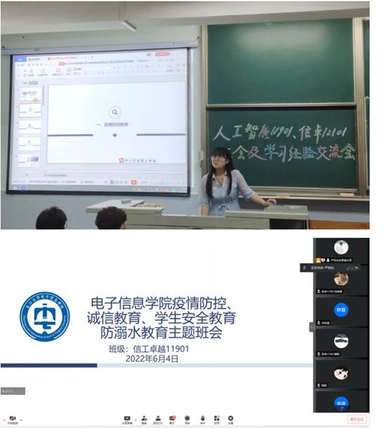 各年级各班结合当前毕业生安全离校、防溺水、学生考试诚信教育等相关安全教育要求,采取线上线下相结合的方式召开了疫情防控和安全教育主题班会。