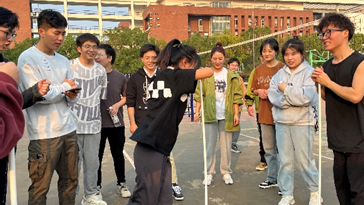 活动中,同学们的热情格外高涨。不倒森林游戏环节,许多同学在转圈圈后尽管头晕摔倒在地了仍然第一时间反应过来将接力棒传递下去;六人七足游戏活动中,有的队伍即使摔倒两次也踊跃重新再来一遍。大家相互鼓劲,你追我赶,整个赛场上气氛热烈。