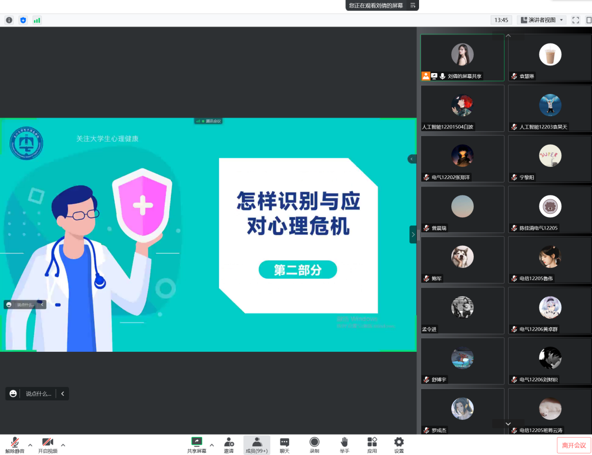 针对全体新生骨干开展心理健康教育培训,培训于新风公寓学工办党员活动室进行线上线下同步开展,以给学生接种心理疫苗,对于可能出现的心理困惑有所准备,指导新生骨干掌握识别与应对心理危机的技能为目的,为黄色直播