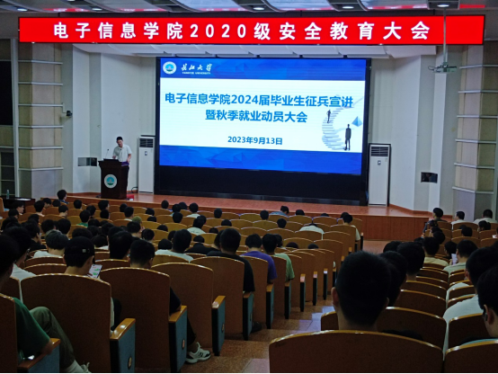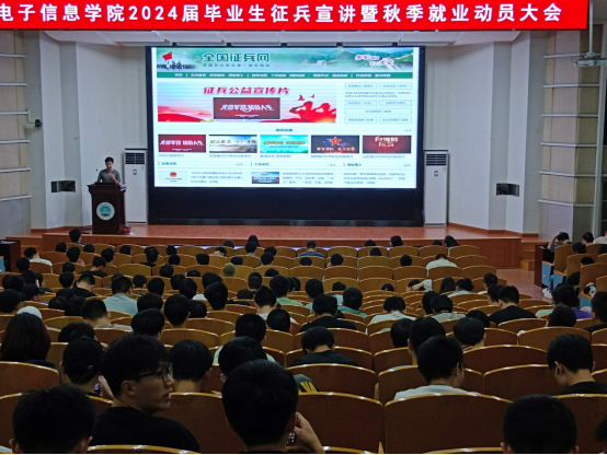 在12教405报告厅举办了2024届毕业生征兵宣讲暨秋季就业动员大会。本次大会旨在向毕业生详细解读国家征兵政策,同时也希望通过分享就业信息和经验,帮助毕业生们做好就业准备,拓宽就业渠道。