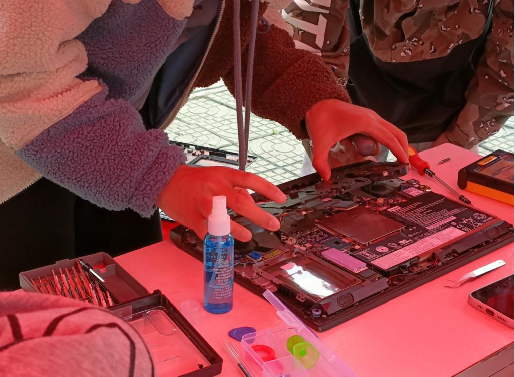 安排专业水平过硬的学生组成维修队伍面向全校学生提供常用小电器维修、电脑清灰等服务,同时线下宣传日常安全用电常识,帮助提高宿舍安全用电意识。