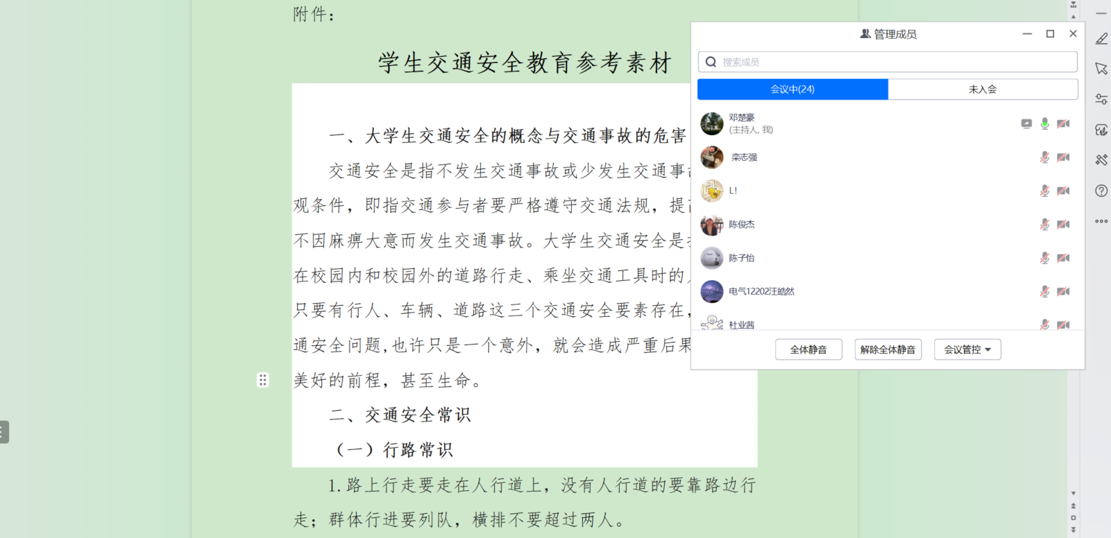 于1月19日至21日组织全体学生线上召开了寒假前后交通安全主题班会。