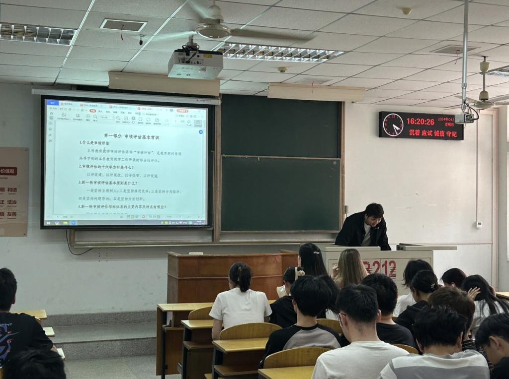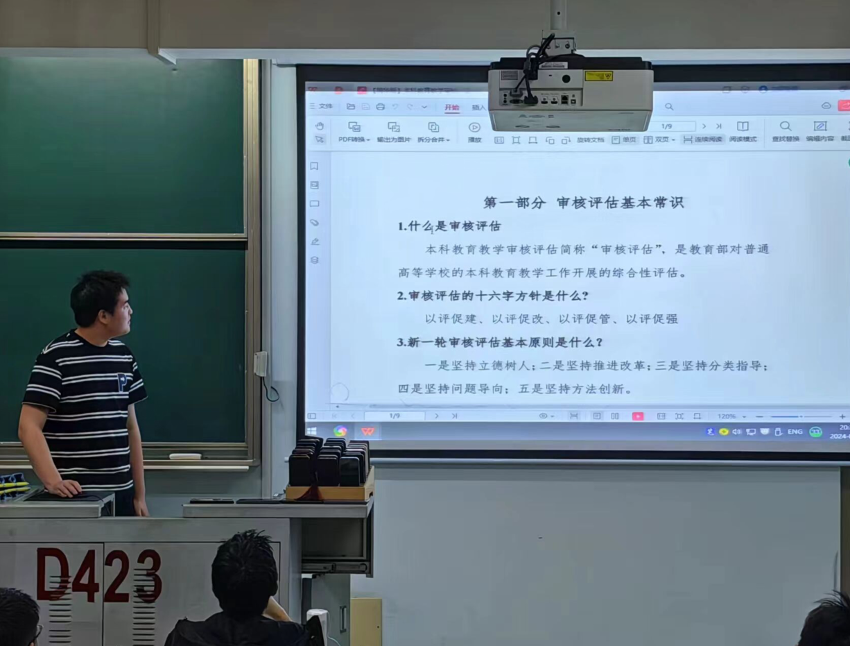 在主题班会上,各班班长带领同学们学习了《本科教育教学审核评估应知应会手册》。各年级辅导员结合学习内容,重点强调了同学们要深刻理解审核评估工作的重大意义,了解学校概况和所学专业的培养目标,自觉做到遵守校纪校规,举止文明有礼,保持良好的学习氛围,以积极的态度和饱满的热情面对未来的学习和生活。