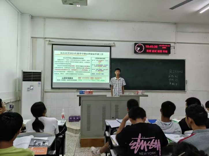 在班会上,同学们从“走进心理健康 ”、“识别心理问题”、“学习心理援助”、“熟悉心理体系”四个方面进行了精彩丰富的讲解。心育委员向大家分析了当下大学生学习和生活中面临的压力点,介绍了如何控制个人情绪和学会自我调节以及释放心理压力的对策。紧接着,班主任结合实际案例,讲述心理健康教育的重要性,同时引导学生完成心理测评。
