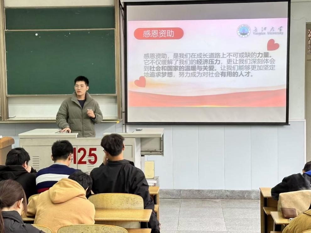 于13教D-125教室开展2024年资助育人活动,活动旨在贯彻党的教育方针和立德树人根本任务,落实奖助学金资助政策,激励学生成长为全面发展的社会主义建设者和接班人。会议由资助专干万谦老师主持。