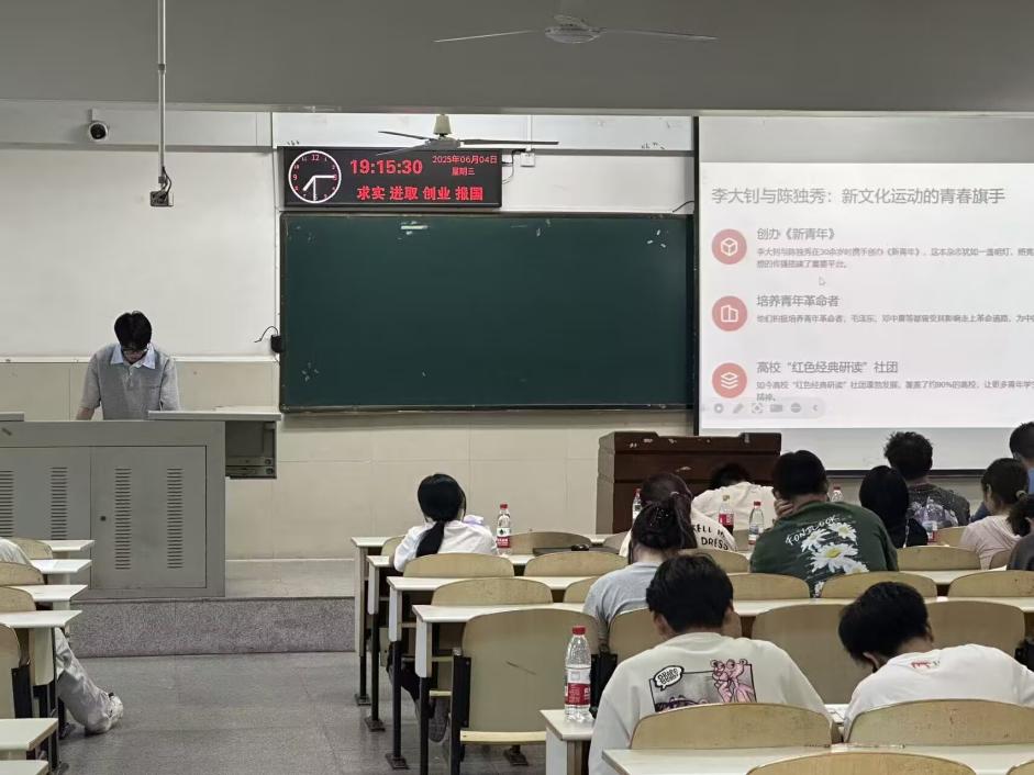 本次基层团干部专项赛要求2023级、2024级各班团支部派一名及以上学生干部参加,2021级,2022级各班团支部自愿报名参加。本次竞赛包含“一站到底”理论知识竞赛和主题团课展示两部分。其中,“一站到底”理论知识竞赛为线下闭卷答题,题型包括选择题、填空题、简答题。主题团课展示部分要求选手根据《团干部思政技能大比武主题团课备赛指南》,围绕“青春当奋进 决胜‘双一流’“活动主题,以PPT形式展示一节主题团课。专家根据选手现场表现,依据评审标准评分,两部分各占总成绩的50%。最后人工智能32403班谢宇菲同学以80.225分的综合成绩获得本次基层团干部思政技能大比武的第一名。