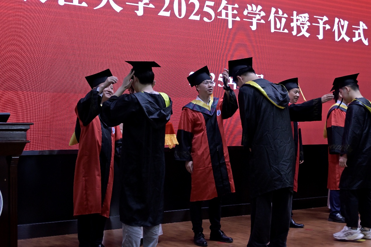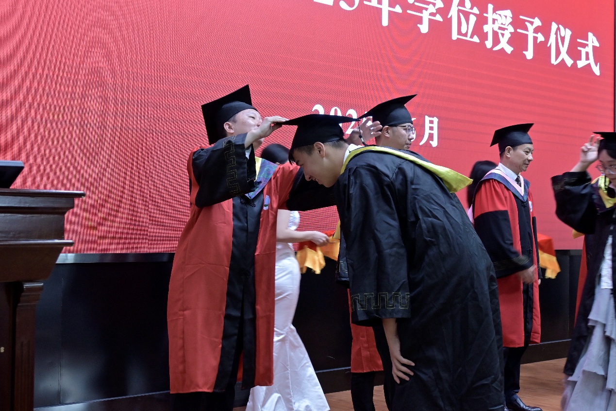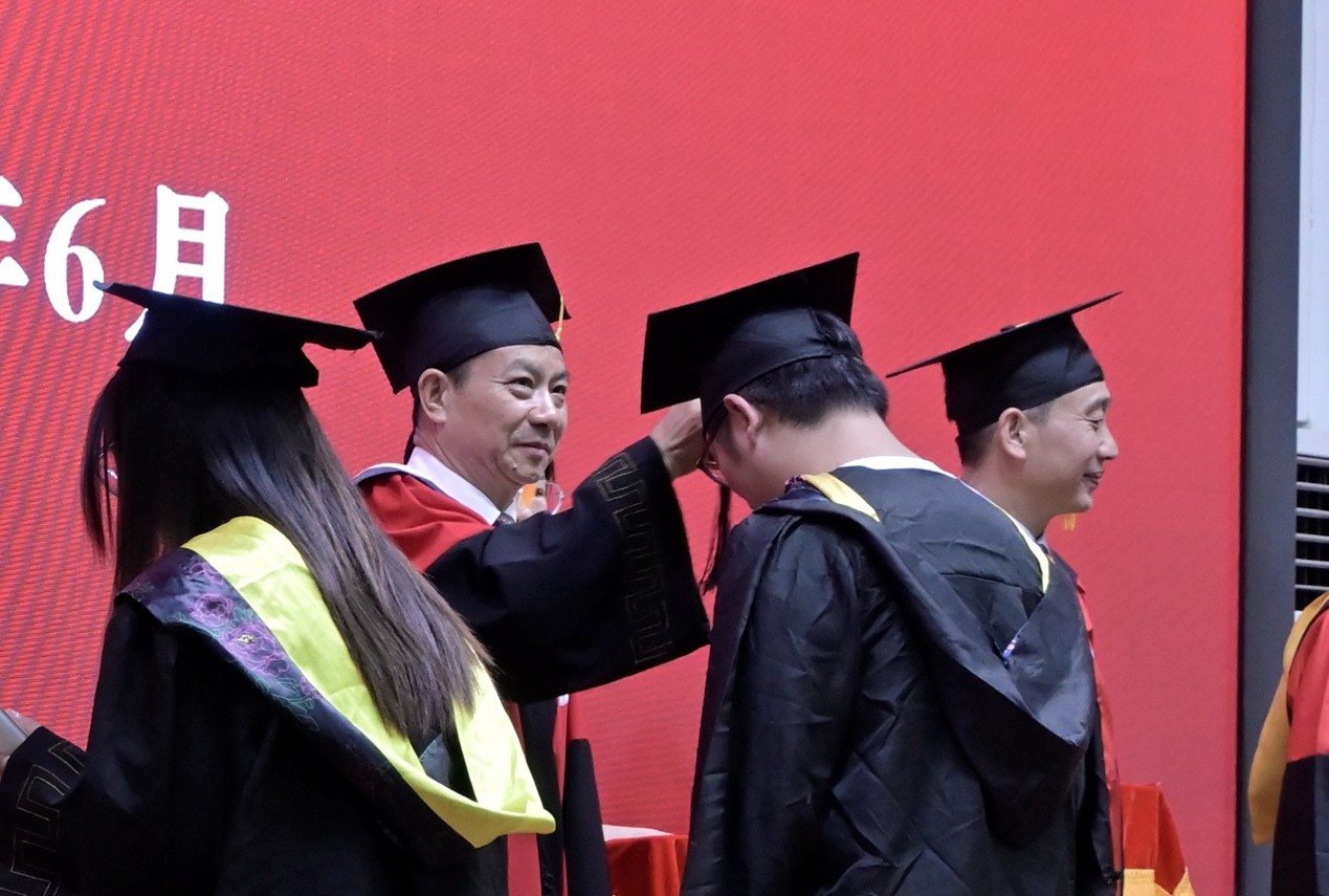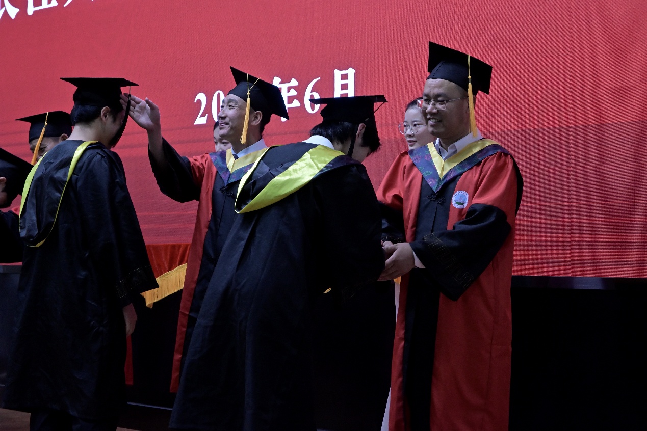 6月16日,黄色直播 毕业典礼暨学位授予仪式隆重举行。党委常委、党委组织部部长、党委统战部部长李应军,院长罗明璋,副院长魏勇、蒋涛、周箩鱼,党委副书记张晨露等莅临现场,黄色直播 全体辅导员、毕业生家长代表参加典礼,230余名博士、硕士和本科毕业生代表齐聚一堂,在师长亲友的共同见证下,导师们为毕业生逐一拨穗正冠,流苏从右至左的摆动,见证着学子们从青涩到成熟的蜕变,标志着人生新篇章的开启。