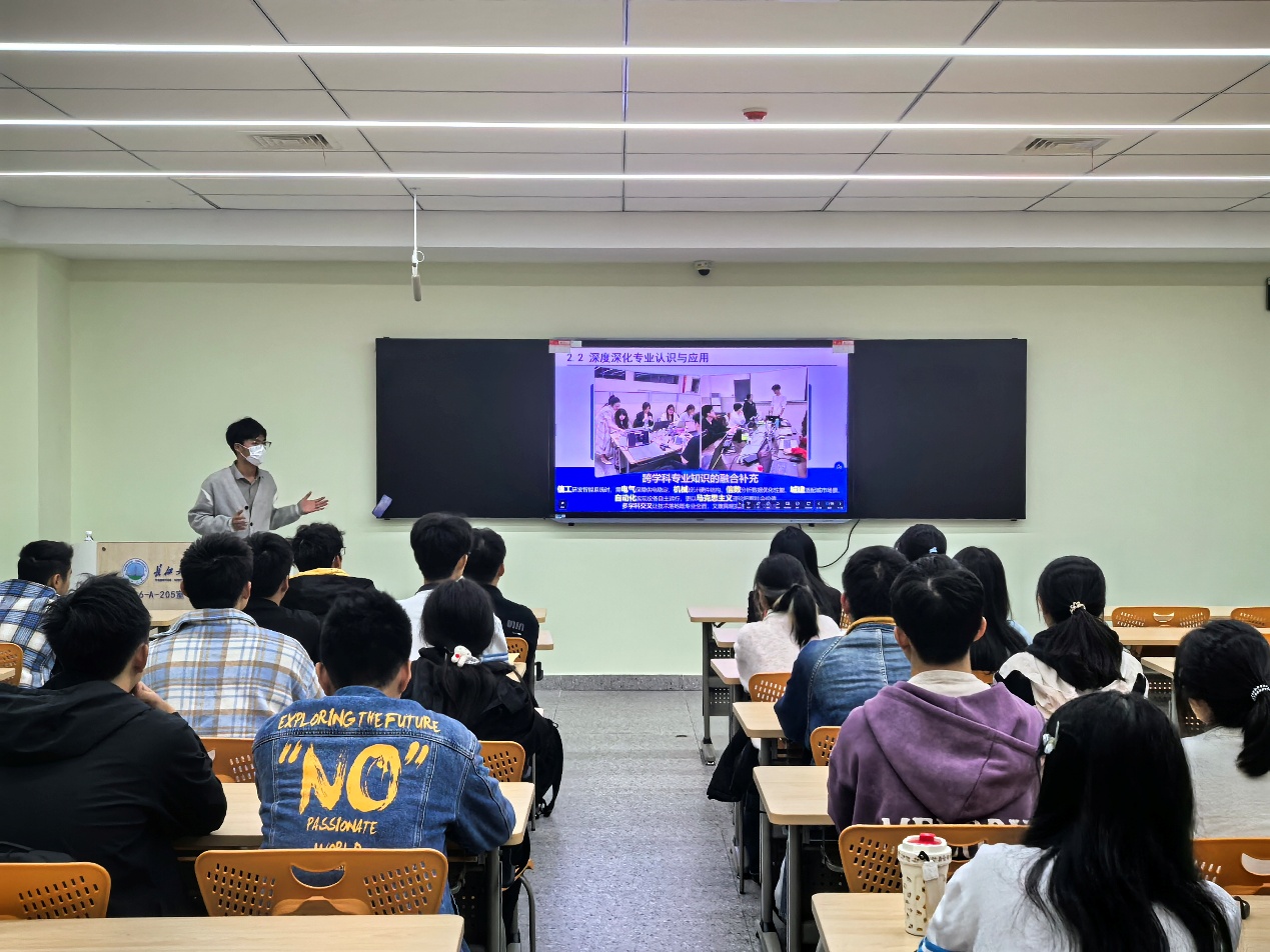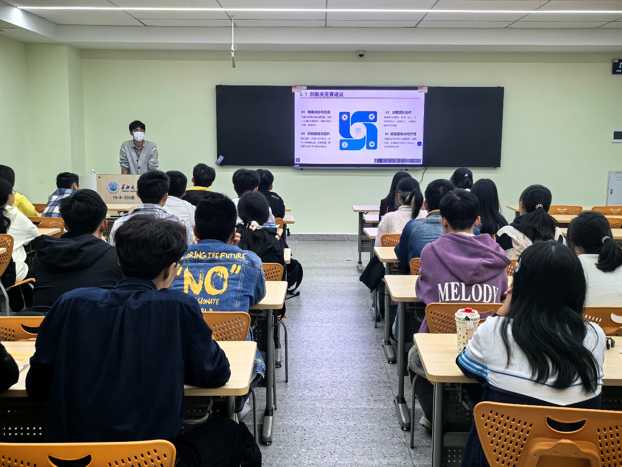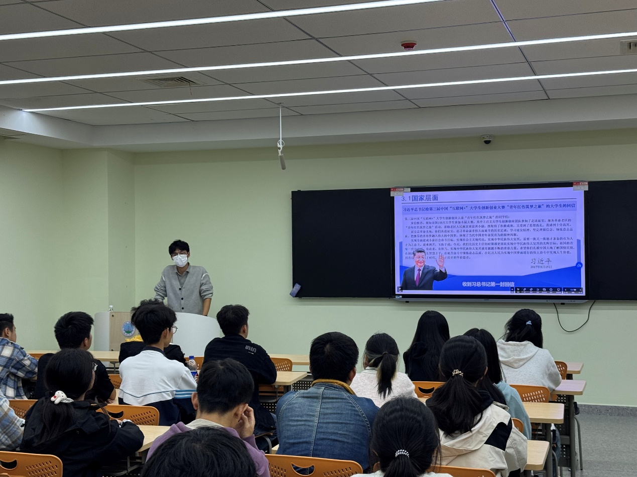 孙同学从“大学生创新创业项目的意义”切入,结合自身经历阐述观点。他表示,参与创新创业项目不仅能将课堂所学的专业知识转化为实践能力,更能在项目推进过程中培养团队协作、问题解决、资源整合等核心素养,“从最初的创意构思,到反复打磨方案,再到站上决赛的舞台,这个过程让我对专业领域有了更深刻的理解,也让我的综合能力得到了全方位提升,对未来职业发展更是大有裨益。”随后,孙同学详细介绍了国家和学校对大学生创新创业项目的支持扶持力度。从项目资金资助、导师指导、场地支持、资源对接等方面阐述了具体举措,让在场同学对参与创新创业项目充满期待。孙同学还结合自身项目经验,给出了细致且实用的建议。此外,孙同学还鼓励同学们多与其他项目团队交流学习,强调了跨学科的重要性,鼓励大家积极参加各类创新创业讲座和沙龙,拓宽视野、积累人脉。