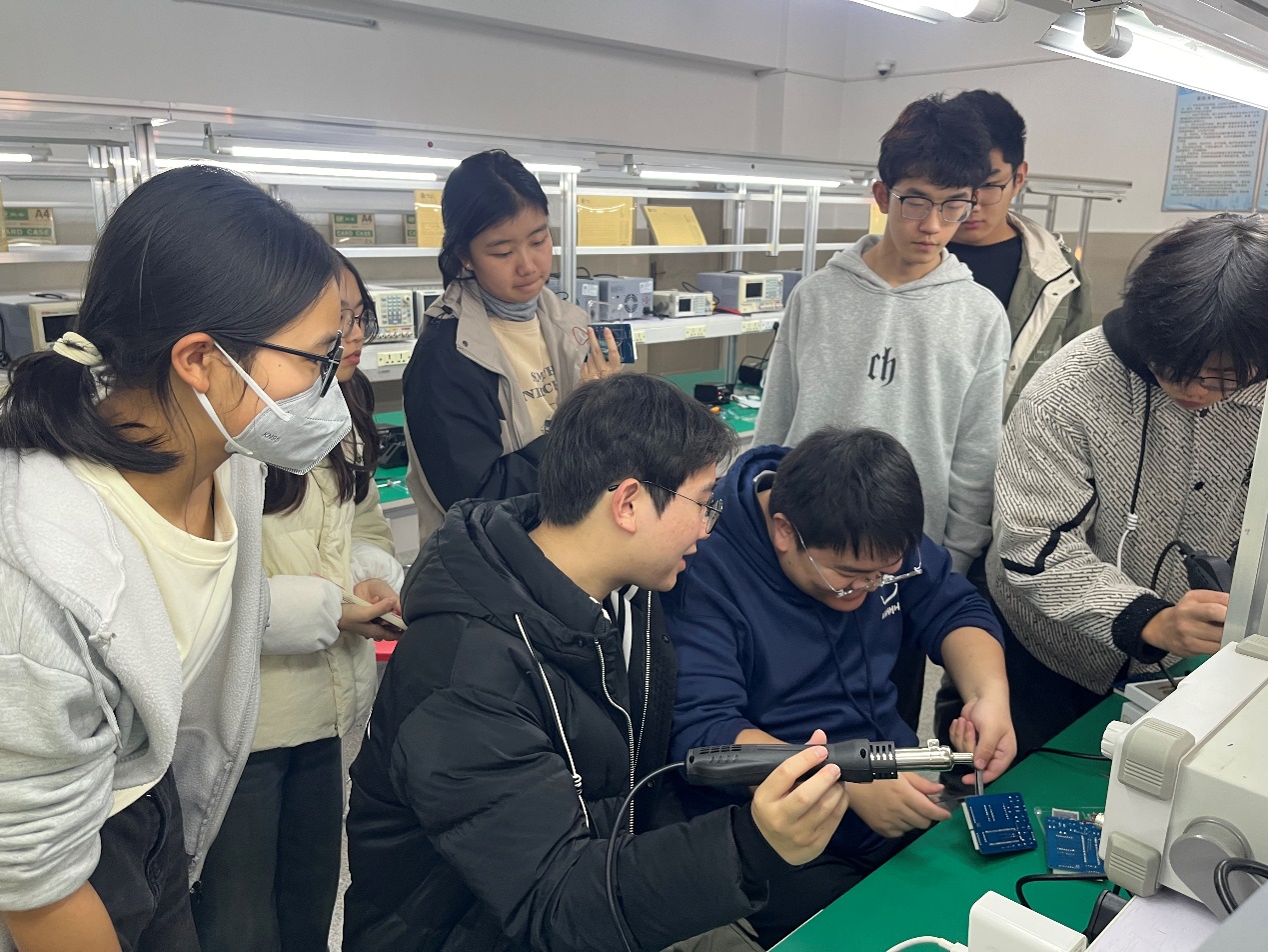 的专业特色。在老师的指导下,同学们亲手制作“指尖陀螺”和“像素游戏机”等兼具趣味性与科技感的电子作品。通过焊接电路、组装元件,同学们不仅锻炼了专业技能,更在专注的动手实践中释放了压力,体验到了创造的乐趣和成就感。