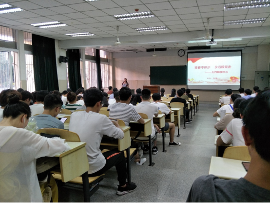 活动伊始,王书记对入党积极分子进行了一些党的基础知识的提问,以此强化入党积极分子对党的基础知识的学习了解。而后王书记以五四运动为切入点,带领同学们了解了五四运动及五四精神,并引出当代青年的使命和担当。王书记说,五四运动,爆发于民族危难之际,是一场以先进青年知识分子为先锋、广大人民群众参加的彻底反帝反封建的伟大爱国革命运动,为我们新一代青年留下了“爱国、进步、民主、科学”的五四精神。王书记强调:身为入党积极分子就要响应习近平总书记的号召,做有理想、有本领、有担当的新时代青年。她对入党积极分子提出了要求,一要有理想并坚持为之奋斗;二要树立和践行社会主义核心价值观,从一开始就将人生的扣子扣好;三要有本领,把学习作为其首要任务;四要有担当,与新时代共前进,为实现中国梦而奋斗。