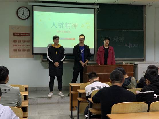 于10月20日在东校区13教C-219开展了十月班团会。本次班团会主题是“弘扬“人链”精神,争当新时代有为青年”。在本次班团会中,同学们了解了以下内容。