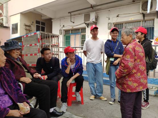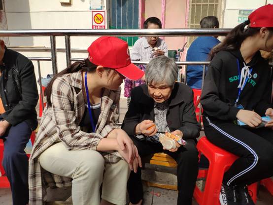 老人们和同学们亲切交谈