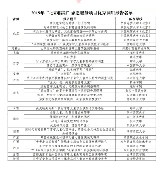图为2019年“七彩假期”志愿服务项目优秀调研报告公示