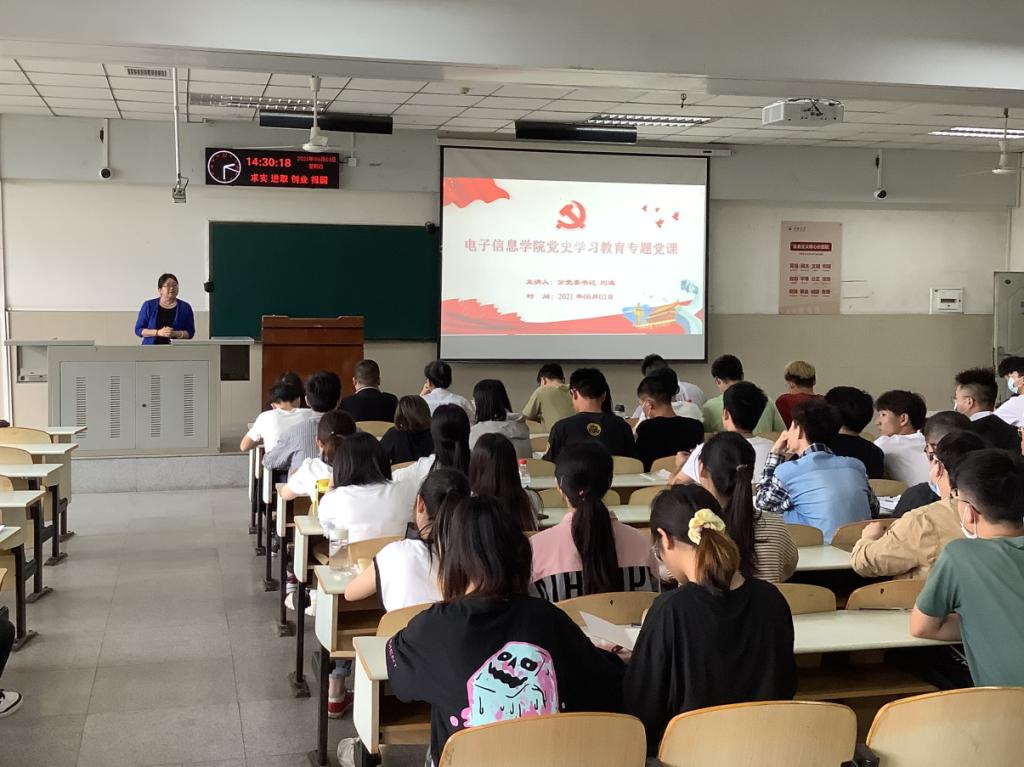 党史学习教育专题党课在12教102举行,本次党课由分党委书记刘逸主讲,由分党委副书记郭启炜主持,全体学生党员参加。