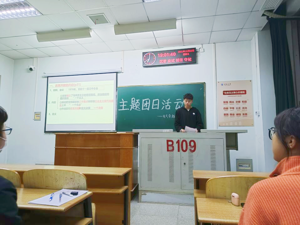会议伊始,学生会主席杨睿首先对本次主题团会进行了介绍,随后杨睿对各位团支书讲解了10月主题教育实践活动的内容。本次10月主题教育实践活动的主题为“牢记使命跟党走,凝心聚力谱新篇”。本次活动将会以主题团日的形式开展。会议中,杨睿讲到各团支部要把学习贯彻党的创新理念作为思想武装的重中之重,以主题团日为主要形式,围绕新民主主义革命、社会主义革命和建设改革开放、中国特色社会主义新时代等专题给班级成员持续深入开展“学党史、强信念、跟党走”主题学习,并及时通过“智慧团建”系统录入“党史学习”主题团日活动开展情况。同时各团支部也要将“学党史、强信念、跟党走”主题学习教育的理论学习转化为实践,组织班级成员持续深入开展“我为同学办实事”和“让新时代劳动教育起好步,创建美丽校园”行动,大力营造崇尚劳动、热爱劳动的校园劳动氛围。