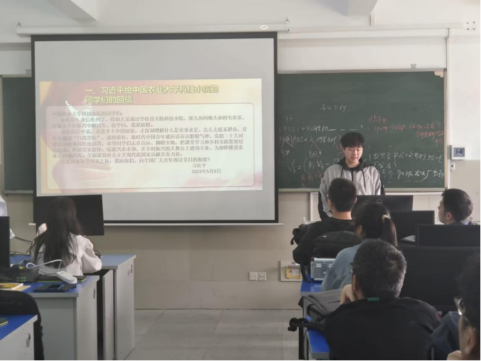 5月26日上午,电气12102团支部在12教303举行班团会。在班团会上,同学们学习了习近平总书记给中国农业大学科技小院同学们的回信精神,开展“学习监察法 争做廉洁人”专题学习。王梦杰同学采用新媒体展现形式,全方位地为大家介绍习近平新时代中国特色社会主义思想,明确广大青年应当毫不动摇坚持和巩固党的领导地位和执政地位;最后,她还介绍了“青年大学习”网上主题团课学习,督促同学们响应国家号召,积极开展学习,并建议大家多多参加社会志愿活动,多为社会做事,为国家做事。
