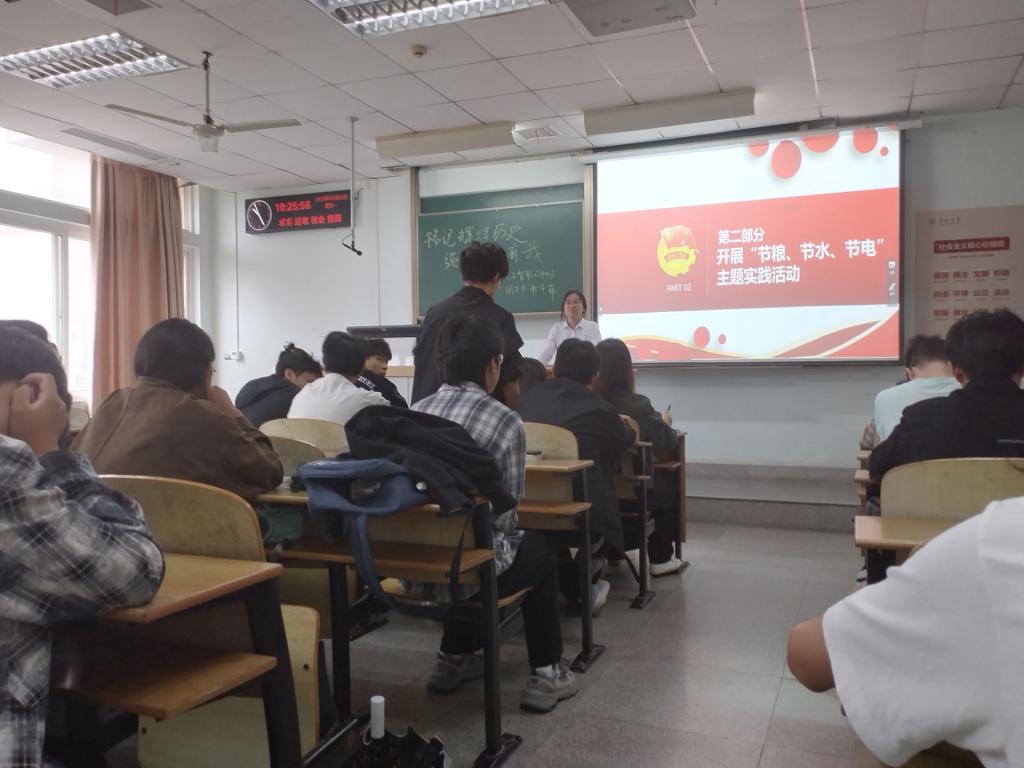 在“节粮、节水、节电”主题实践环节,谢宇菲带领团员们共同探究校园节约小妙招,鼓励大家积极投身资源节约与环境保护行动。活动进一步增强团员“节粮、节水、节电”意识,弘扬勤俭节约的传统美德,强化 “厉行节俭,反对浪费”的社会责任感,为构建和谐校园凝聚共识与力量。