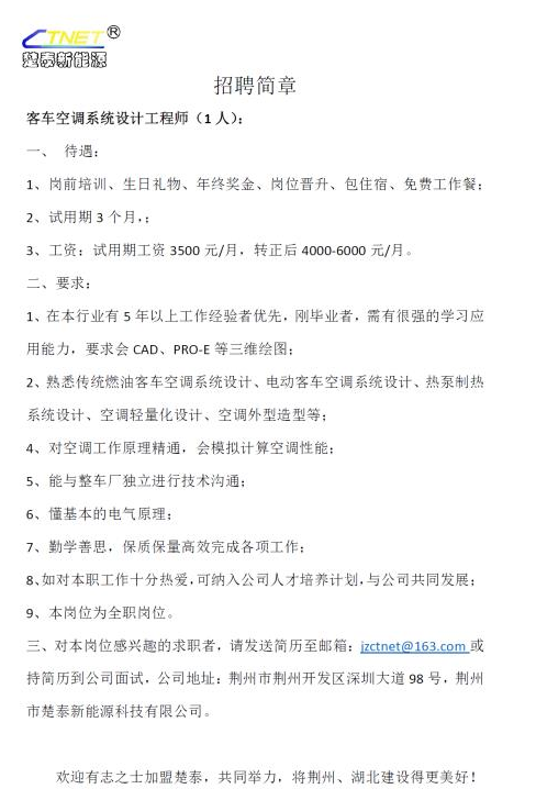楚泰新能源2020年招聘