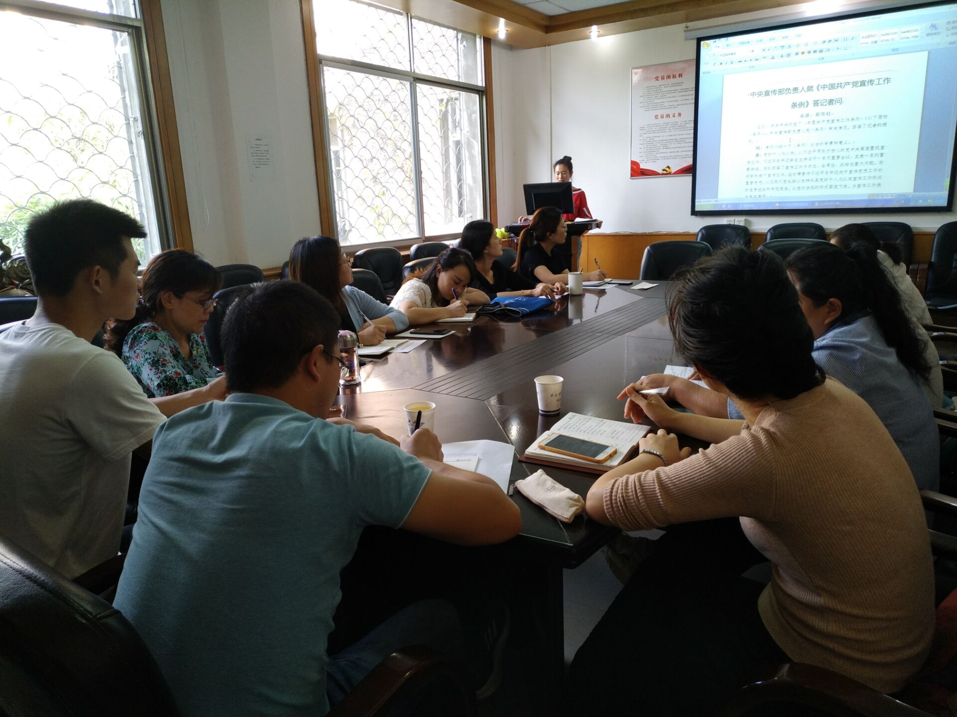 与会同志认真学习了中央宣传部负责人就《中国共产党宣传工作条例》答记者问、《关于深化新时代学校思想政治理论课改革创新的若干意见》、《中美贸易摩擦的缘起、影响和未来走向》、《直面现实 负重前行——党委书记朱业宏在中层干部培训研讨会上的讲话》、《不忘初心 牢记使命 扎实推进“双一流”建设——校长冯征在2019年暑期工作研讨会上的讲话》、《黄色直播