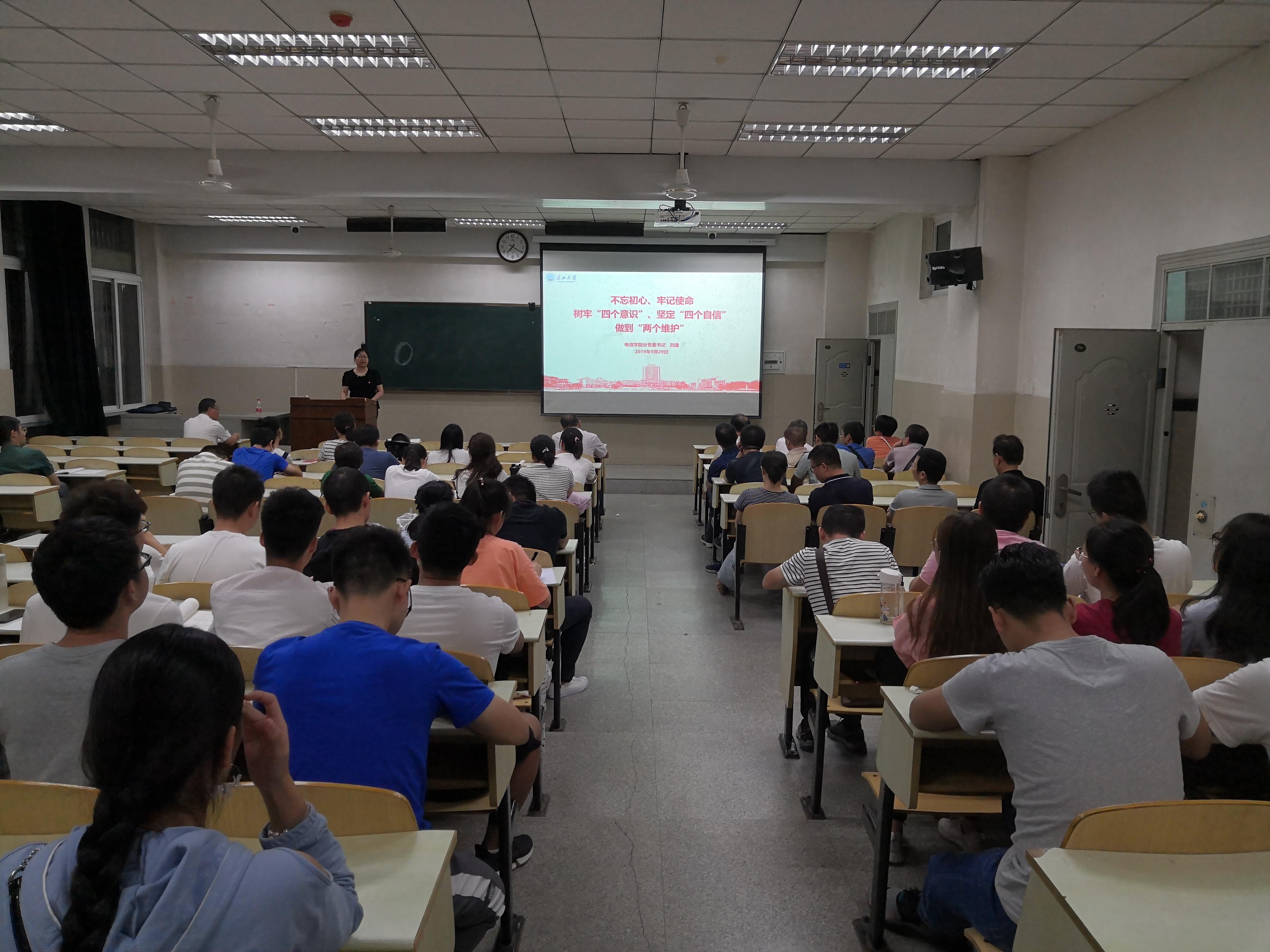 已经开展的工作,并结合主题教育,为全院师生党员提出了三点意见:一要提高政治站位,深刻认识主题教育重大意义;二要领会文件精神,准确把握主题教育的目标要求;三要聚焦任务目标,统筹推进四项工作落实任务清单。随后刘逸分享了五点学习感受,与所有党员共勉:一要自觉成为学习宣传贯彻落实十九大精神的践行者;二要自觉成为维护以习近平同志为核心的党中央权威的践行者;三要自觉成为“四个意识”的践行者;四要自觉成为“四个自信”的践行者;五要自觉成为“不忘初心、牢记使命”的践行者。