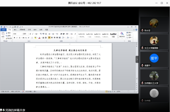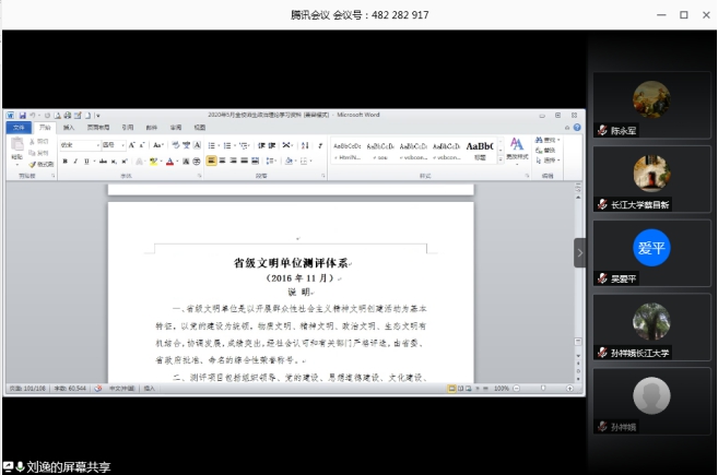 党委中心组全体成员通过腾讯会议在线开展5月份政治理论学习。学习由分党委书记刘逸主持。