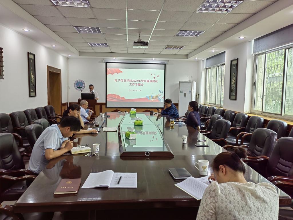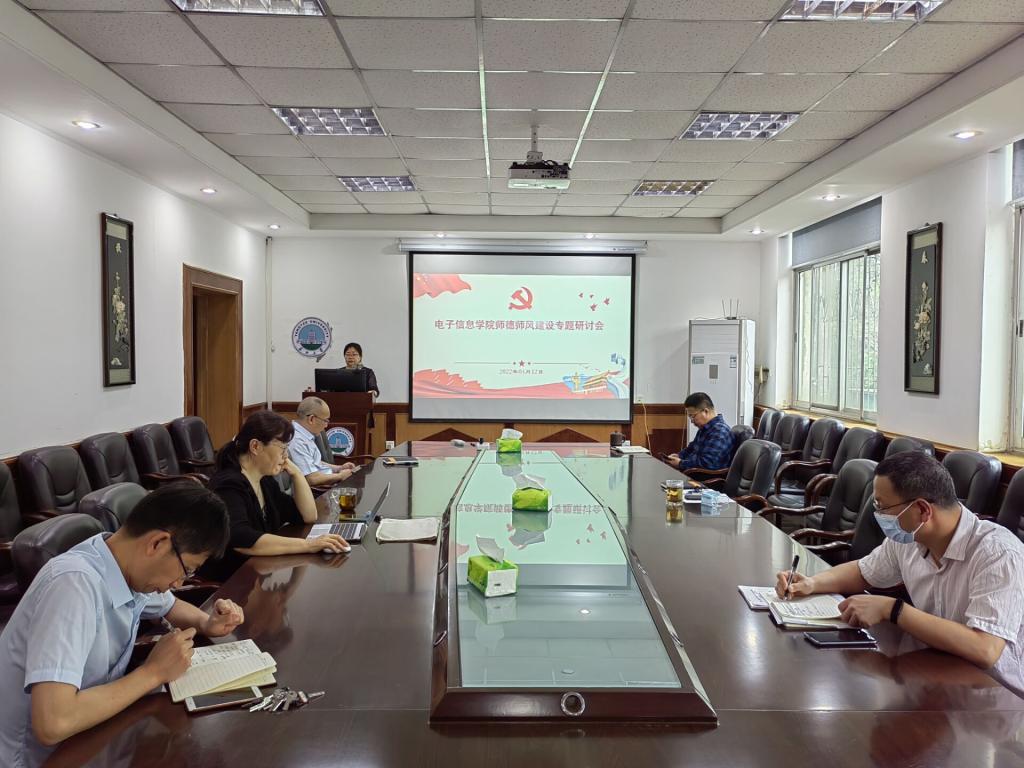 2022年4月12日上午,电信黄色直播 领导班子在10教205会议室召开党风廉政建设和师德师风建设专题研讨会,会议由分党委书记刘逸主持,院长孙祥娥、副院长蔡昌新、陈永军、吴爱平和分党委副书记郭启炜参加会议。