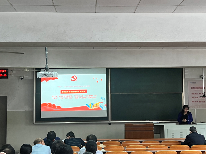 政治理论学习方面,刘逸从“习近平新时代中国特色社会主义思想”、“湖北省第十二次党代会精神”、“党风廉政建设”及“师德师风建设”四个专题出发,重点学习了习近平总书记在省部级主要领导干部“学习习近平总书记重要讲话精神,迎接党的二十大”专题研讨班上的讲话、习近平总书记考察湖北重要讲话、《习近平谈治国理政》第四卷第二章“坚持党的全面领导”:心怀国之大者,切实把增强“四个意识”、坚定“四个自信”、做到“两个维护”落到行动上、习近平总书记在全国宗教工作会议上的重要讲话、习近平生态文明思想、习近平总书记给“中国好人”李培生胡晓春的回信、湖北省第十二次党代会精神、习近平总书记在中共中央政治局第四十次集体学习时的讲话、教育部等关于加强新时代高校教师队伍建设改革的指导意见9项内容。随后,刘逸还就意识形态相关问题进行了阐述,她表示,学生是互联网的原住民,新学期广大教职工要继续做好同学们的意识形态教育,需加强网络舆论的监督,对突发舆情要及时处理,营造清朗的网络空间,同时各位老师也要自己坚持政治正确,意识到意识形态工作的极端重要性。