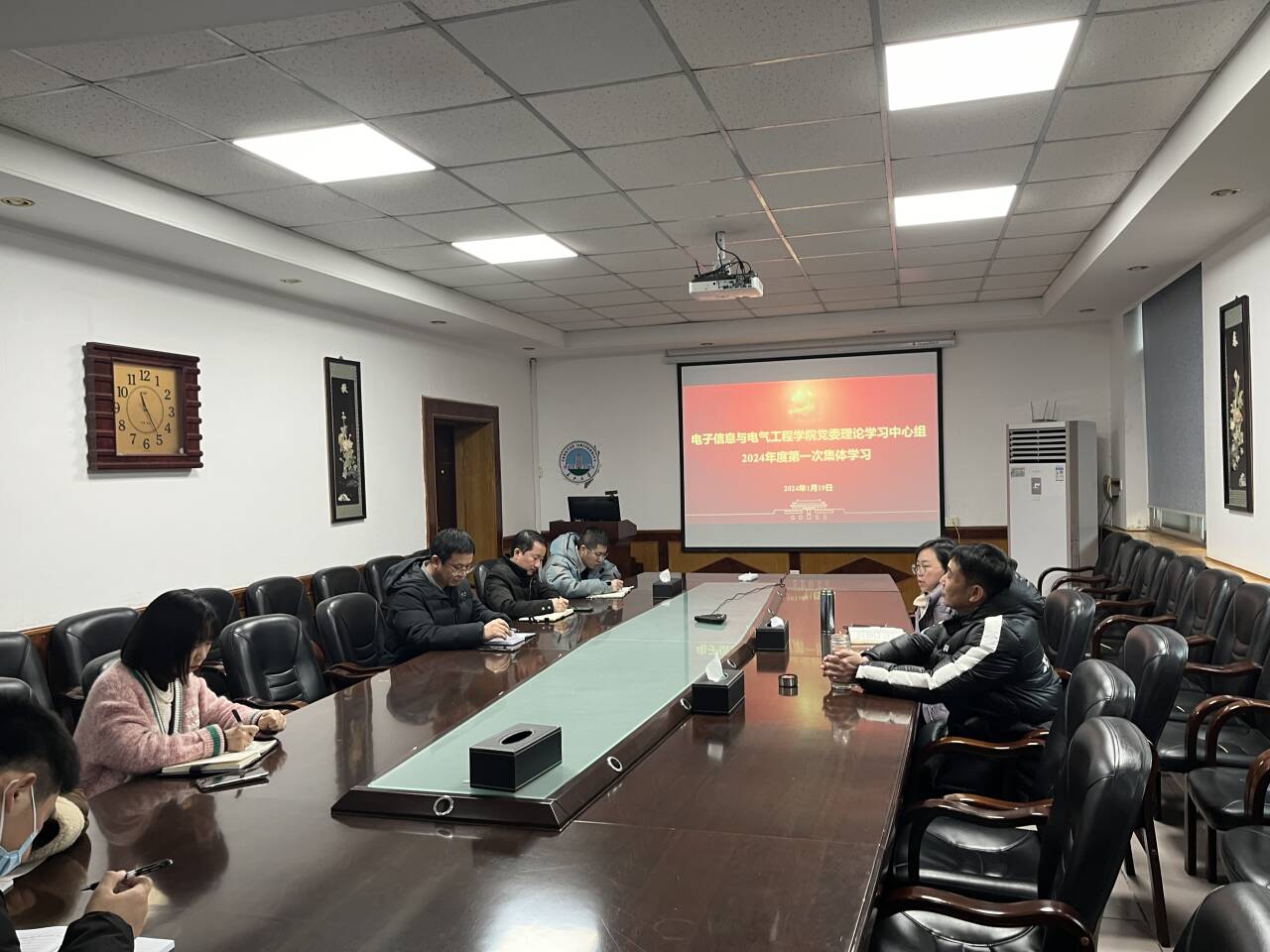 党委理论学习中心组在10教205会议室召开2024年度第一次集体学习会,党委书记郭梅主持会议。