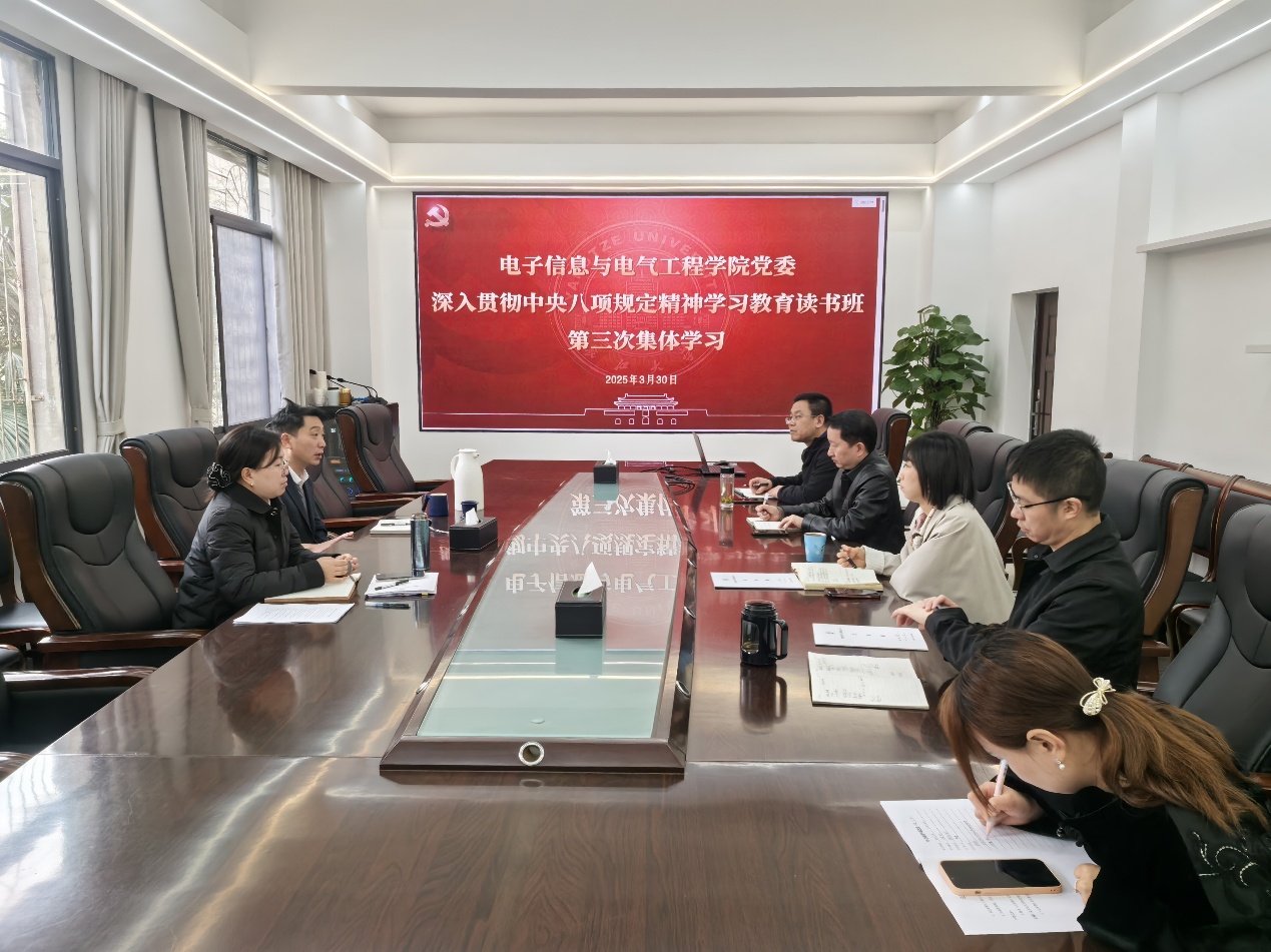 深入贯彻中央八项规定精神学习教育读书班在10教205会议室开展第三次集体学习,党委书记郭梅主持学习会。