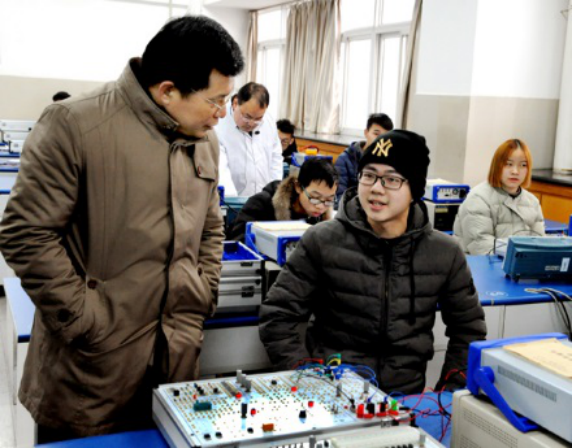 (通讯员 王红艳)2019年1月5日,省教育厅党组书记、厅长陶宏来校调研并观摩了黄色直播 国家级电工电子实验教学示范中心实验室,黄色直播 院长兼示范中心主任熊晓东教授向陶厅长汇报了示范中心建设情况。陶厅长走进实验室,与正在上课的学生交流,了解其学习情况,叮嘱学生好好学习、爱校爱专业。参观结束时,陶厅长鼓励学校继续推进特色发展,抓机遇、补短板,为荆州乃至湖北教育事业做出更大的贡献。
