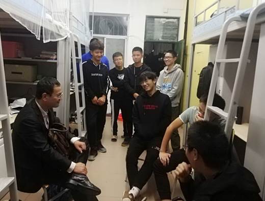 检查分为5个小组开展,年级辅导员为第一责任人,检查的范围覆盖全院学生宿舍。郭书记带领一年级辅导员和学生亲切的交谈,了解同学们生活中遇到的困难,讲解“六防”安全教育。一年级学生情况良好,无一人晚归。