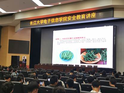 辅导员万谦的讲话,万老师重点讲解了宿舍问题以及食品安全问题。他指出在周六周日学生不出宿舍产生大量的垃圾对宿舍环境的影响从而影响我们的健康,宿舍使用大功率的电器可能带来的危害,并以实例辽宁某高校大排档撂倒20名学生、94名学生倒于未炖熟的四季豆及上海商黄色直播