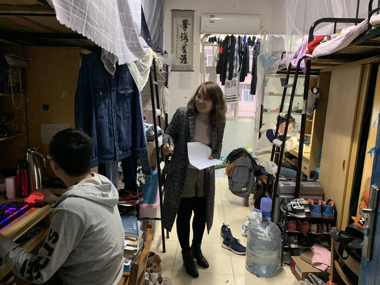 分党委副书记郭启炜带领全体辅导员以及学生干部深入学生宿舍开展消防安全隐患排查工作。