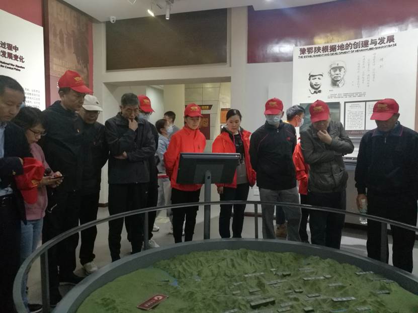 教工党员首先参观了新四军第五师纪念馆。在讲解员的深情讲解中,大家回顾了革命的峥嵘岁月:抗战期间,新四军第五师坚决执行党的全面抗战路线和战略决策,依靠鄂豫边区人民群众开展游击战争,从160多人逐步壮大为5万正规军和30万民兵的抗日武装力量,建立了以大悟山为中心的9万多平方公里抗日民主根据地,实现了从四面八方对日军在华重要据点武汉的战略包围,在中华民族抗战史上树起了一座不朽的丰碑。