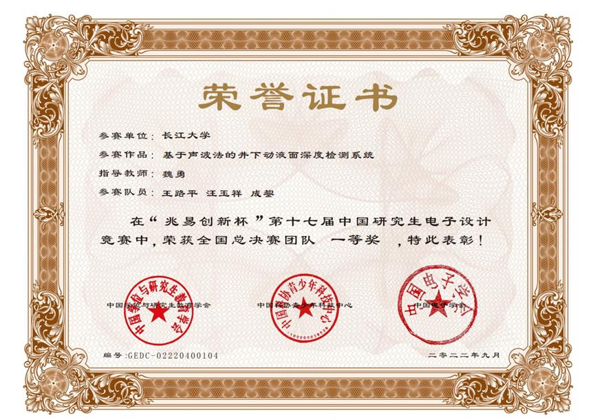 研究生王路平、汪玉祥、成鋆等同学组成的团队从全国五千多支队伍中脱颖而出,喜获全国总决赛一等奖,指导老师魏勇也荣获全国总决赛优秀指导教师奖。本次获奖也是我校在中国研究生电子设计竞赛中史上首次摘得一等奖。