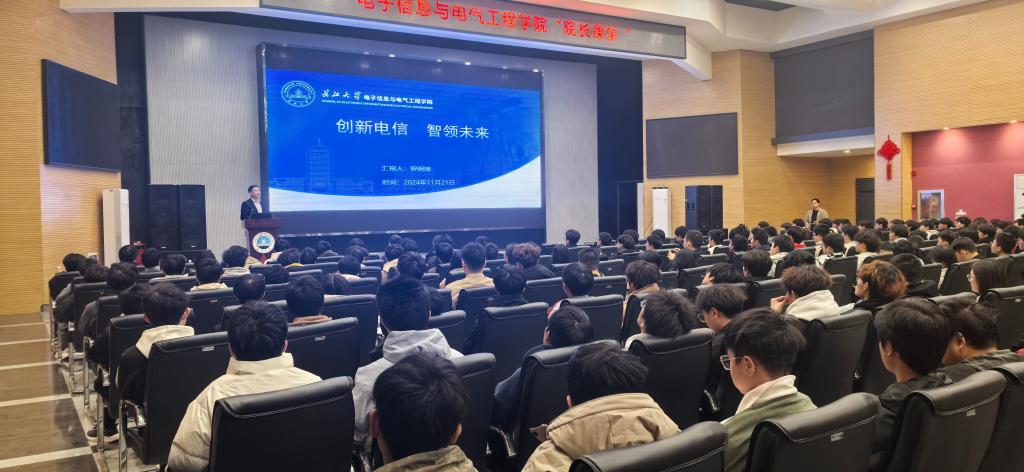 2024级全体本科生带来“启航计划·院长开讲了”报告会的第一讲。会议由党委副书记张晨露主持。