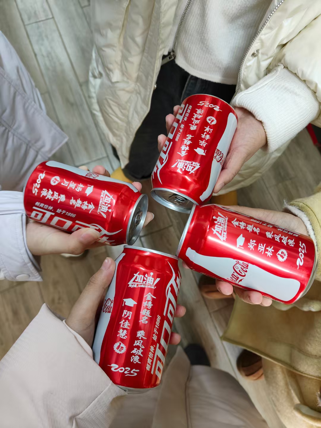 logo及“创新电信 智领未来”标语,祝福大家“顶峰相见”。定制版可乐刻印学生姓名以及“金榜题名 乘风破浪”等祝福语,寓意“百事可乐,一切顺利”。“逢考必过”幸运杯祝福考研学子诸事顺遂,一战成硕。另外还精心挑选了10张荆州博物馆联名的明信片,祝福大家成功上岸。