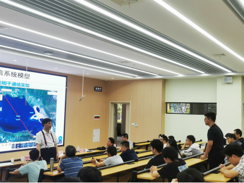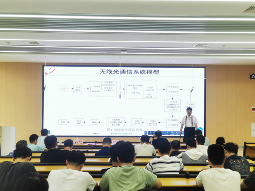 师生聆听了报告。柯院士介绍了西安理工大学无线光通信与网络研究中心,深耕无线光通信领域,近期在学术研究、技术创新与应用实践中取得多项突破性成果,展现了我国在该领域的领先实力。柯院士深入浅出地介绍该技术核心原理与应用场景,阐述了利用激光传输信号,具备通信速率高、无需频谱许可、抗电磁干扰等技术优势,介绍了国内在北斗卫星、高铁通信等领域加速布局,自主研发了无线激光综合业务通信机,通信速率达1.25Gbps,误码率优于10⁻⁹,并成功完成了青海湖100公里无线光相干通信实验,突破了长距离传输的技术瓶颈。在学生培养方面,柯院士强调“一人一创新点”理念,导师需聚焦指导深度,通过项目实践提升科研能力。报告最后,柯熙政与黄色直播