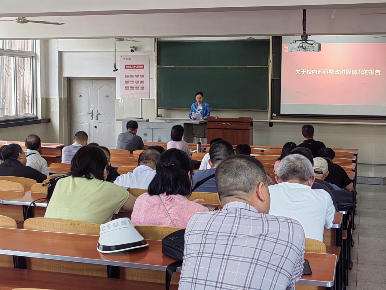 随后,郭梅书记带领全体教职工开展政治理论学习,深入解读学校新学期工作部署会的核心要义与实践要求,引导大家将思想与行动统一到学校发展战略上来。同时,她就校内巡察整改工作的阶段性进展、已落实举措及后续计划向全体教职工作详细通报。
