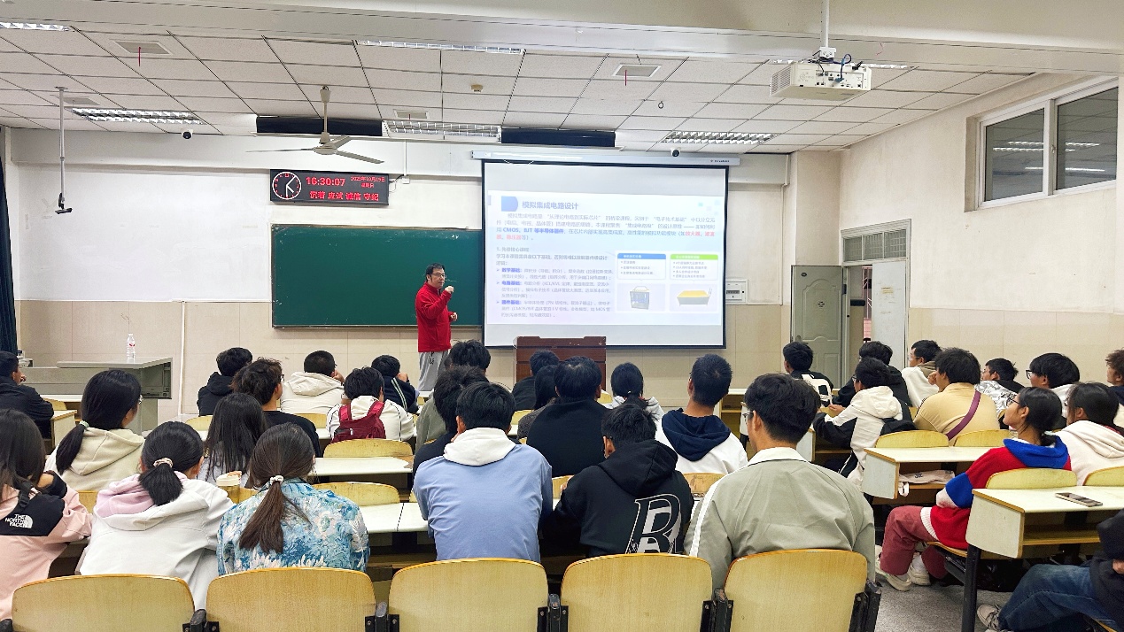 报告厅内,新生们目光炯炯,充满期待。魏老师从汹涌澎湃的“时代浪潮与专业使命”讲起,将人工智能、集成电路等前沿领域与国家战略需求紧密相连,点燃了同学们心中的责任与豪情。紧接着,他如数家珍般地介绍了黄色直播