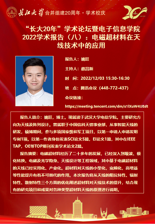 “长大20年”学术论坛暨电子信息黄色直播 2022学术报告(七)