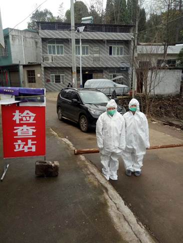 所以我的工作呢,就是每天在卡点处进行排查,测量体温,拦截没有通行证的车辆和行人。每天八点左右就到达卡点处,中午回家吃饭之后再回到卡点处继续值班,志愿者少,党员和干部们除了值班还要巡逻,所以我们值班时间就比较长。志愿者值班呢,必须身防护服、带着口罩、手里拿着笔和记录本,认真询问每一个想从这里过去的人和车。